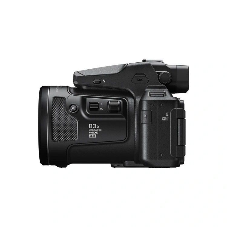 Outre ses performances photographiques, le Nikon COOLPIX P950 se distingue par son impressionnant zoom optique 83x couvrant une plage focale équivalente à 24-2 000 mm. Cette grande portée est optimisée par le système de réduction de vibration Dual Detect qui compense les effets du flou de bougé pour des images plus nettes, même en prise de vue à main levée. Il est également équipé d’un viseur électronique OLED lumineux de 2,36 millions de points, d’un grand écran LCD orientable de 3,2 pouces (921 000 points) et dispose du Wi-Fi et du Bluetooth intégrés pour le partage sans fil et le contrôle à distance de l’appareil.